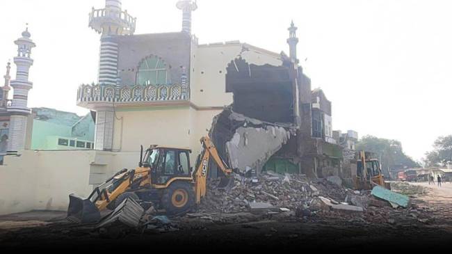 #WATCH | Fatehpur, Uttar Pradesh | Today, the District Administration and PWD’s joint team demolished the illegally constructed portion of Noori Jama Masjid in the village Lalauli.