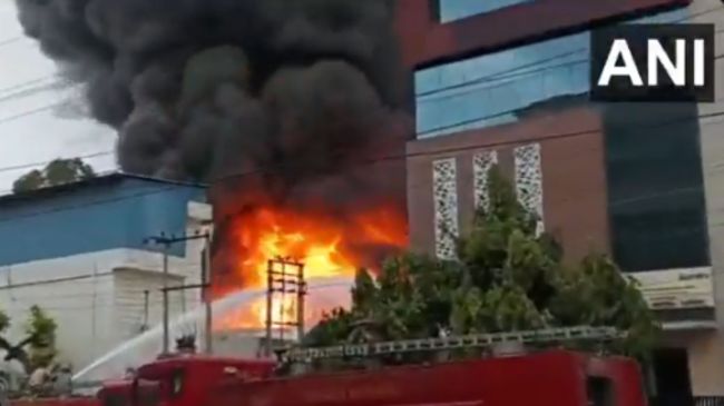 #WATCH | Uttar Pradesh | A fire breaks out at a private firm in Noida Sector 2. Fire tenders are at the spot. More details awaited. pic.twitter.com/ZZxzAf7nRT