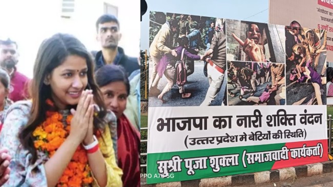 सपा नेता पूजा शुक्ला ने लगाया पोस्टर