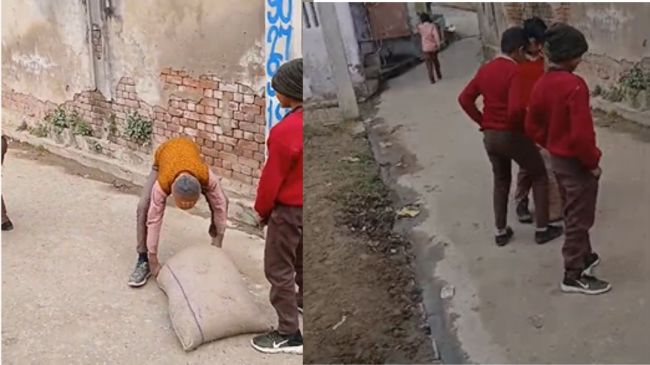 इतना ही नहीं ढुलाई के समय हालात ऐसे हो गए जब एक छात्रा से बोरे नहीं उठ रहे थे तो बोर को उठाने के लिए दो-दो छात्रों को मेहनत करनी पड़ी। गांव के ही किसी शख्स ने इसका एक वीडियो अपने फोन में रिकॉर्ड कर लिया और वायरल कर दिया।