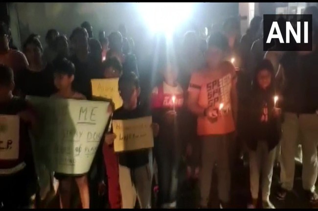 Uttar Pradesh | People in Noida's Sector 100 took out a candle protest march after a seven-month-old child was mauled to death by a stray dog at an apartment building in Noida. (19.10) pic.twitter.com/MUNEhltBOt