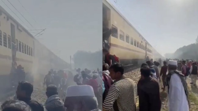 рдЙрддреНрддрд░рдкреНрд░рджреЗрд╢ рдХреЗ рдХрд╛рд╕рдЧрдВрдЬ рдореЗрдВ рдЪрд▓рддреА рдЯреНрд░реЗрди рд╕реЗ рдЕрдЪрд╛рдирдХ рдзреБрдЖрдВ рдЙрдардиреЗ рд▓рдЧрд╛ред рдЗрд╕рдХреЗ рдмрд╛рдж рд▓реЛрдХреЛ рдкрд╛рдпрд▓рдЯ рдиреЗ рдЯреНрд░реЗрди рд░реЛрдХ рджреАред pic.twitter.com/tEBTpUeHRw