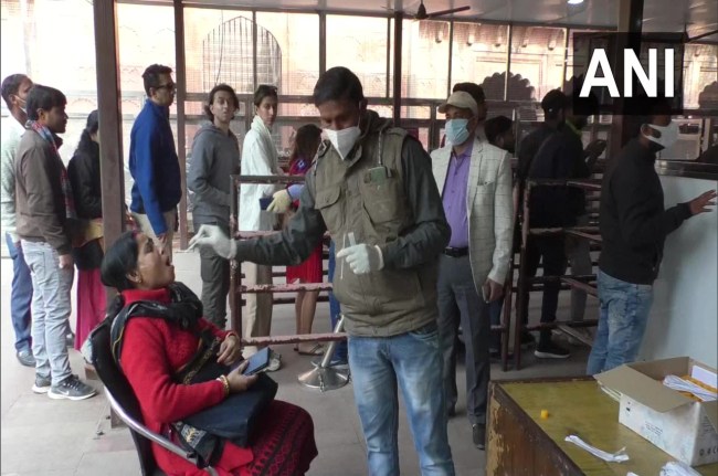 Agra, Uttar Pradesh | Covid tests are being conducted among tourists visiting the Taj Mahal. pic.twitter.com/GTyvut8U5t