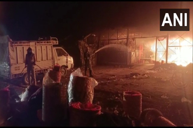 Uttar Pradesh | Fire broke out at Navin fruit market in Lucknow, last night. Fire tenders were rushed to the spot and the fire was brought under control. pic.twitter.com/VrXbT5wElP