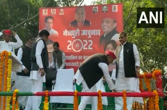 Mainpuri By-Election: उत्तर प्रदेश (Uttar Pradesh) की मैनपुरी लोकसभा सीट (Mainpuri Lok Sabha Seat) पर होने वाले उपचुनाव (By-Election) के लिए पार्टियों की ओर से प्रचार शुरू हो गया है। रविवार को समाजवादी पार्टी (Samajwadi Party) की ओर सभी यहां चुनावी रैली का आयोजन हुआ, जिसमें सपा प्रमुख अखिलेश यादव (Akhilesh Yadav) ने मंच पर अपने चाचा शिवपाल यादव (Shivpal Yadav) के पैर छुए और कहा कि उनके रिश्ते में कभी कोई तनाव नहीं आया है। अखिलेश यादव ने यह भी कहा कि उनकी पार्टी इस उपचुनाव में ऐतिहासिक जीत दर्ज करेगी।