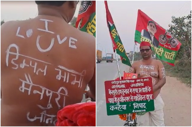 शिवपाल सिंह समेत परिवार के लगभग सभी लोग चुनाव प्रचार में जुटे हुए हैं। इसी बीच समाजवादी पार्टी के एक कार्यकर्त्ता ने सभी का ध्यान अपनी ओर आकर्षित कर लिया है। अपनी पीठ पर ‘आई लव यू डिंपल भाभी, मैनपुरी जीतेंगे’ लिखकर प्रचार में जुट गया है। जानकारी के मुताबिक समाजवादी पार्टी के इस समर्थक का नाम कन्हैया निषाद है। वह कुशीनगर जिले से मैनपुरी तक का सफर साइकिल से तय कर रहे हैं। इतना ही नहीं, उन्होंने एक संकल्प भी लिया है।