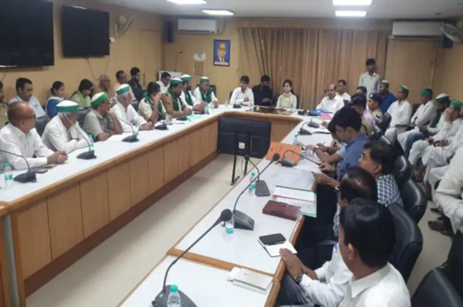 рд╡рд╣реАрдВ рдорд╛рдорд▓реЗ рдХреЛ рдмрдврд╝рддрд╛ рджреЗрдЦ рд╕реЛрдорд╡рд╛рд░ рджреЛрдкрд╣рд░ рдмрд╛рдж рддреАрдиреЛрдВ рдкреНрд░рд╛рдзрд┐рдХрд░рдг рдХреЗ рд╕реАрдИрдУ, рдХрд┐рд╕рд╛рдиреЛрдВ рдФрд░ рдХрд┐рд╕рд╛рди рдиреЗрддрд╛рдУрдВ рдХреА рд╣рд╛рдИрд▓реЗрд╡рд▓ рдмреИрдардХ рд╣реБрдИред рдЗрд╕рдореЗрдВ рдиреЛрдПрдбрд╛ рдХреА рд╕реАрдИрдУ рдЛрддреБ рдорд╛рд╣реЗрд╢реНрд╡рд░реА рднреА рдореМрдЬреВрдж рд░рд╣реАрдВред рдпрд╣рд╛рдВ рднреА рдХрд┐рд╕рд╛рди рдиреЗрддрд╛рдУрдВ рдиреЗ рдЧреМрддрдордмреБрджреНрдз рдирдЧрд░ рдкреНрд░рд╢рд╛рд╕рди рдФрд░ рддреАрдиреЛрдВ рдкреНрд░рд╛рдзрд┐рдХрд░рдгреЛрдВ рджреНрд╡рд╛рд░рд╛ рдХрд┐рд╕рд╛рдиреЛрдВ рдХреЗ рдЙрддреНрдкреАрдбрд╝рди рдХрд╛ рдЖрд░реЛрдк рд▓рдЧрд╛рдпрд╛ред рдмреИрдардХ рдореЗрдВ рдХрд┐рд╕рд╛рди рдиреЗрддрд╛рдУрдВ рдиреЗ рдХрд╣рд╛ рдХрд┐ рдпрджрд┐ рдЙрдирдХреА рдорд╛рдВрдЧреЗ рдкреВрд░реА рдирд╣реАрдВ рд╣реБрдИ рддреЛ рд╡рд╣ рдмрдбрд╝рд╛ рдЖрдВрджреЛрд▓рди рдХрд░реЗрдВрдЧреЗред
