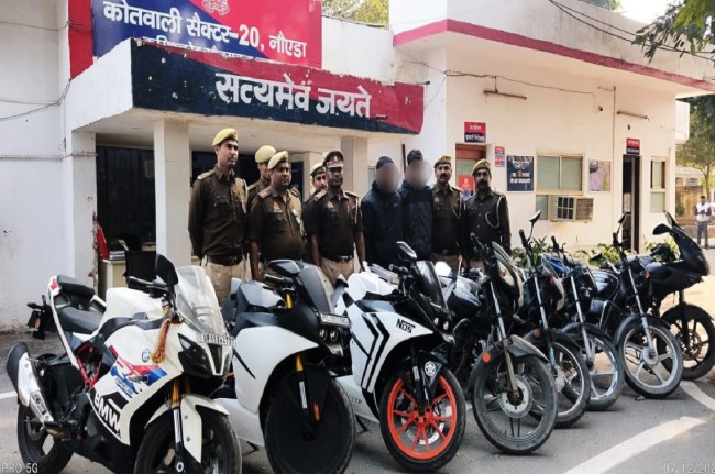 नोएडा पुलिस ने बताया कि थाना सेक्टर-20 पुलिस ने दो आरोपियों को गिरफ्तार किया है। इनकी पहचान गाजियाबाद के अंसल टाउन टावर, जनता फ्लैट निवासी अनुराग (18) और विकास (28) के रूप में हुई है। पुलिस ने बताया कि विकास मूलरूप से बिहार का रहने वाला है। फिलहाल ग्रेटर नोएडा के बादलपुर में रह रहा है। दोनों शातिर चोरों को सेक्टर-25 मार्केट से पकड़ा गया है। पुलिस ने उनके कब्जे से आठ महंगी हाईस्पीड बाइकें बरामद की हैं।