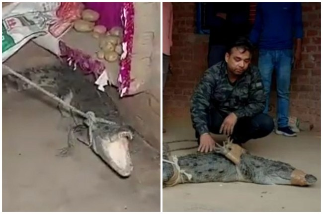 पुलिस ने कमरे में बंद किया मगरमच्छ