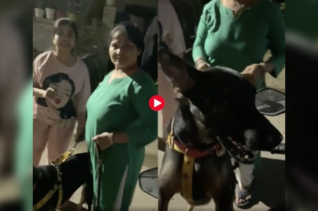 सड़क पर कुत्ते को घुमा रही थीं मां-बेटी