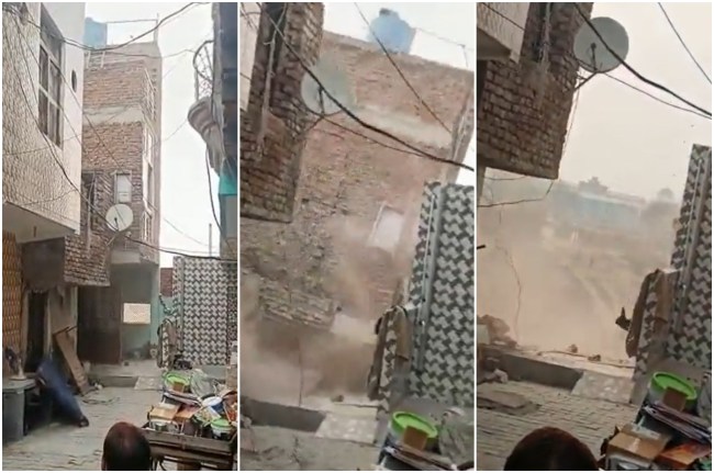वहां खड़े लोगों ने वीडियो बनाना शुरू कर दिया। सामने आए वीडियो में भी देखा जा सकता है कि कुछ लोग एक गली में खड़े हैं। मोबाइल के कैमरे को एक मकान पर सेट कर रखा है। पहले कोई हलचल नहीं होती है, लेकिन वीडियो के आखिर में दिखता है कि गली में आखिरी वाला मकान एक सेकेंड में ही भराभराकर साइड में गिर जाता है। लोगों ने इस वीडियो को सोशल मीडिया पर वायरल किया है।