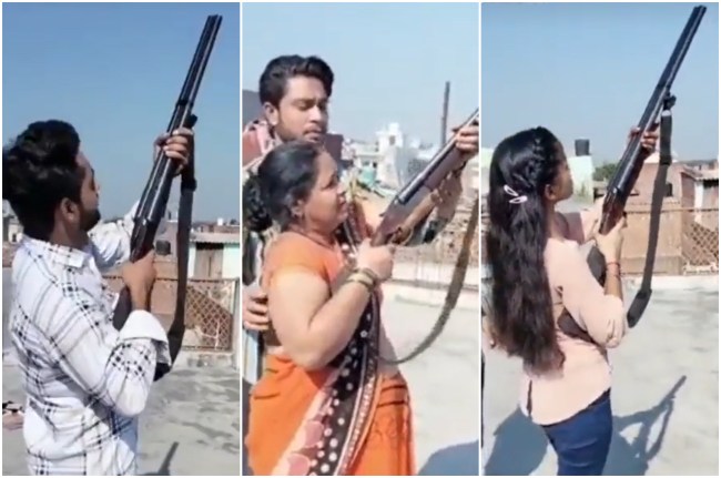 वीडियो में देखा जा सकता है कि युवक ने पहले अपनी मां के हाथों में बंदूक थामी। हवाई फायरिंग के लिए नाल ऊपर की और गोली दाग दी। इसके बाद वीडियो में दिख रहा है कि वह खुद भी एक राउंड फायर करता है। इसके बाद अपनी छोटी बहन का बंदूक थमाता था। उसे भी हवा में बंदूक की नाल करके फायर कराता है।