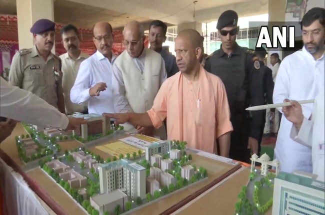 Uttar Pradesh CM Yogi Adityanath inspects the construction of a medical college in Bijnor pic.twitter.com/1D4gmlDXLI