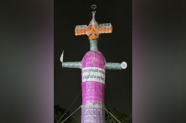 लखनऊ की सबसे पुरानी ऐशबाग रामलीला समिति ने इस साल ‘राष्ट्र-विरोधी’ और धार्मिक कट्टरता की थीम पर रावण का पुतला बनाया। 70 फीट ऊंचे इस पुतले पर ‘सर तन से जुदा’ और ‘राष्ट्रद्रोह का समूल नाश’ लिखा हुआ था, जिसे रावण दहन के समय अनुसार जलाया गया। रामलीला समिति के लोगों ने बताया कि उन्होंने यह विषय इसलिए चुना है, क्योंकि वे समाज से सांप्रदायिकता का पूरी तरह से खत्म करना चाहते हैं।