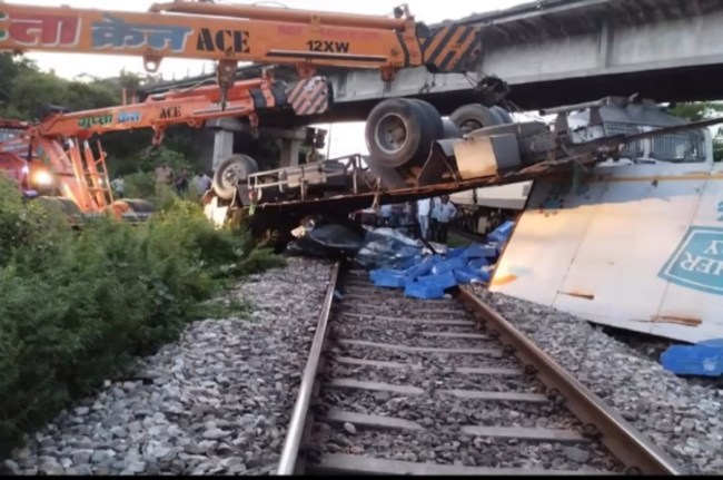 ट्रैक पर पड़ा था ट्रक, तभी आ गई ट्रेन