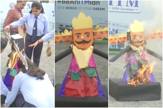 समाचार एजेंसी एएनआई के मुताबिक यूपी के गोरखपुर जिले में प्रौद्योगिकी और प्रबंधन संस्थान में बीटेक छात्रों ने मोबाइल फोन की मदद से रावण पुतला दहन का स्मार्ट तरीका खोजा है। छात्रों ने इसका एक वीडियो भी सोशल मीडिया पर शेयर किया है।