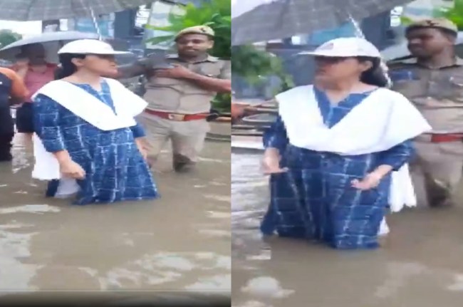 Viral Video: उत्तर प्रदेश (Uttar Pradesh) की राजधानी लखनऊ (Lucknow) में बारिश (Heavy Rain) अपना रौद्र रूप दिखा रही है। गुरुवार सुबह से कभी तेज तो कभी धीरे-धीरे बारिश का दौर जारी है। वहीं शुक्रवार को लखनऊ के कैंट इलाके में एक दीवार भी गिर गई। इसमें नौ लोगों की दर्दनाक मौत हो गई। शुक्रवार को ही लखनऊ की कमिश्नर (Lucknow commissioner) ने प्रभावित इलाकों का जायजा लिया। वह घुटनों तक पानी में उतरीं। बारिश के बाद इलाकों की हालात देखकर उनके होश उड़ गए। उन्होंने तत्काल आदेश जारी किए। कमिश्नर का यह वीडियो (Video) सोशल मीडिया (Social Media) पर वायरल हो रहा है।