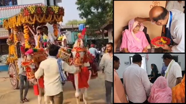 рд╡реЛрдЯрд┐рдВрдЧ рдХрд░рдиреЗ рд╕реЗ рдкрд╣рд▓реЗ рджрд╛рджреА рдХреА рдЖрд░рддреА рдЙрддрд╛рд░реА рдЧрдИ, рдЙрдиреНрд╣реЗрдВ рдЪрдВрджрди рд▓рдЧрд╛рдпрд╛ рдЧрдпрд╛ рдФрд░ рдлрд┐рд░ рдмрдЧреНрдЧреА рдкрд░ рдмреИрдард╛рдпрд╛ рдЧрдпрд╛ред рдмрдЧреНрдШреА рд╕рдЬрд╛рдИ рдЧрдИ рдереА рдФрд░ рдвреЛрд▓ рдирдЧрд╛реЬреЗ рдХреЗ рд╕рд╛рде рдЙрдиреНрд╣реЗрдВ рдШрд░ рд╕реЗ рдкреЛрд▓рд┐рдВрдЧ рдмреВрде рд▓реЗ рдЬрд╛рдпрд╛ рдЧрдпрд╛ред рджрд╛рджреА рдиреЗ рдпрд╣рд╛рдВ рдЬрд╛рдХрд░ рд╡реЛрдЯ рдбрд╛рд▓рд╛, рдЙрдирдХреЗ рд╕рд╛рде рдкрд░рд┐рд╡рд╛рд░ рдХреЗ рдЕрдиреНрдп рд╕рджрд╕реНрдп рднреА рдореМрдЬреВрдж рдереЗред рдЖрдХрд╛рд╢рд╡рд╛рдгреА рд╕рдорд╛рдЪрд╛рд░ рдХреА рддрд░рдл рд╕реЗ рджрд╛рджреА рдХрд╛ рд╡реАрдбрд┐рдпреЛ рд╢реЗрдпрд░ рдХрд┐рдпрд╛ рдЧрдпрд╛ рд╣реИред