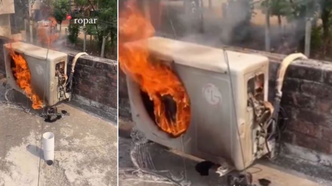 वीडियो के कैप्शन में विवेक सिंह ने लिखा कि पंजाब के रोपड़ से एक वीडियो सामने आया है, जिसमें अत्यधिक गर्मी की वजह से एसी जलते हुए दिखाई दे रहा है। लेकिन इसके अलावा एसी के फटने की कुछ ओर वजह भी हैं। जैसे कि करंट को संतुलित करने के लिए स्टेबलाइजर नहीं लगाना। धूप से एसी यूनिट को बचाने के लिए प्लास्टिक शेड नहीं होना और लगातार कई-कई घंटों-घंटों तक एसी का इस्तेमाल करना।