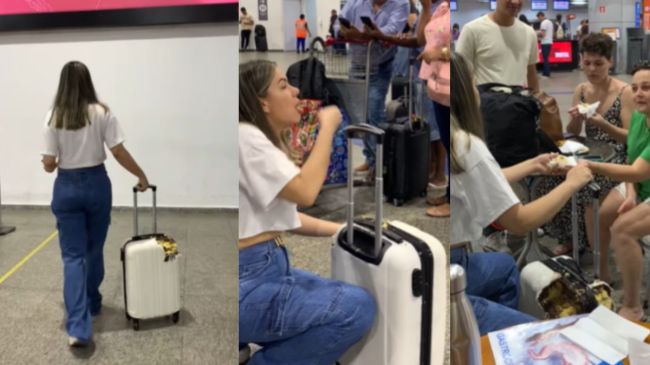 सोशल मीडिया पर जो वीडियो वायरल हो रहा है उसमें एक लड़की अपनी फ्लाइट का इंजतार करते दिख रही है। इस दौरान वो अचानक से अपना बैग तोड़कर खाना शुरू कर देती है। इस वाक्ये को देखकर उसके पास में बैठी महिलाएं हैरान हो जाती हैं। लड़की इस बैग को लेकर पूरे एयरपोर्ट पर टहलती दिख रही है। वीडियो को देखकर लगता है कि ये इस वीडियो में लोगों का रिएक्शन देखना चाहती है।