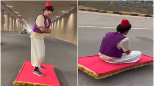 शख्स का एक वीडियो सोशल मीडिया प्लेटफॉर्म रेडिट पर दोबारा शेयर किया गया है, जो पोस्ट होने के बाद से वायरल हो गया है। यह वीडियो मूल रूप से सामग्री निर्माता केविन कौल द्वारा बनाया गया था। वीडियो में कौल को अलादीन की पोशाक पहने और ‘जादुई चटाई’ पर चलते हुए दिखाया गया है। जैसे ही वह अपनी ‘मैजिक मैट’ पर सवार होकर वहां से गुजरे तो यह नजारा देखकर लोग हैरान रह गए। वे आश्चर्य से उसकी ओर देखते हैं। पोस्ट के कैप्शन में केविन कौल ने लिखा, ‘गुरुग्राम में अलादीन प्रैंक’।