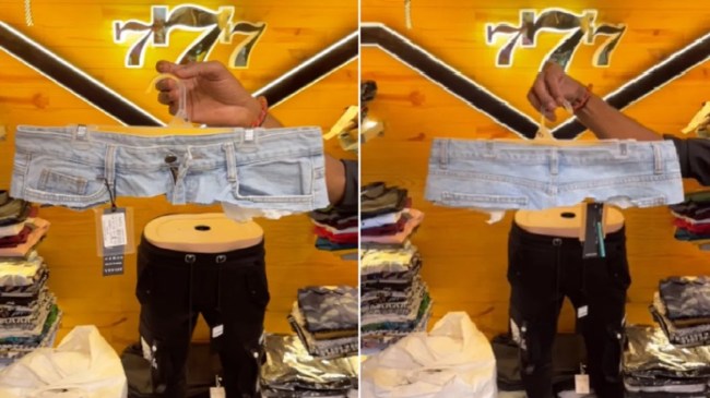 फैशन इंडस्ट्री में जींस पैंट का चलन पिछले कुछ सालों से काफी ज्यादा है। समय के साथ- साथ जींस को कई नए अवतार के साथ मार्केट में उतारा गया है। जैसे- कटी-फटी जींस और छोटी जींस। हाल ही में मार्केट अंदर जींस की एक नई वैराइटी आई है। जिसकी तस्वीर सोशल मीडिया पर तेजी से वायरल हो रही हैं। हम दावे के साथ कह सकते हैं कि जींस की ऐसी वैराइटी को आपने आज से पहले कहीं नहीं देखी होगी। सोशल मीडिया पर वायरल हो रही तस्वीर में आप देख सकते हैं कि इस जींस में सिर्फ कमर तक का ही कपड़ा बचा हुआ है। जींस के नीचे का पूरा हिस्सा फैशन ने कुतर दिया है। सवाल ये है कि आखिर इस जींस को कौन पहनेगा?