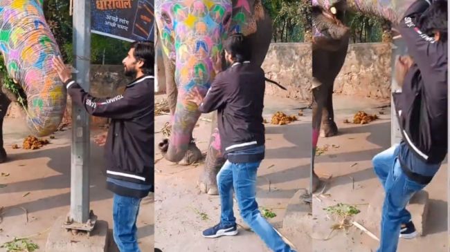 वीडियो में दिखाई दे रहा है कि एक शख्स एक हाथी को घास खिलाने के लिए उसके पास गया। हाथी ने घास ले लिया तो शख्स हाथी के सूंड पर हाथ फेरते हुए बेहद करीब चला गया। शायद वह रील बनवा रहा था, इसलिए हाथी के प्रति और भी प्यार जताने लगा लेकिन हाथी को यह बिलकुल पसंद नहीं आया।