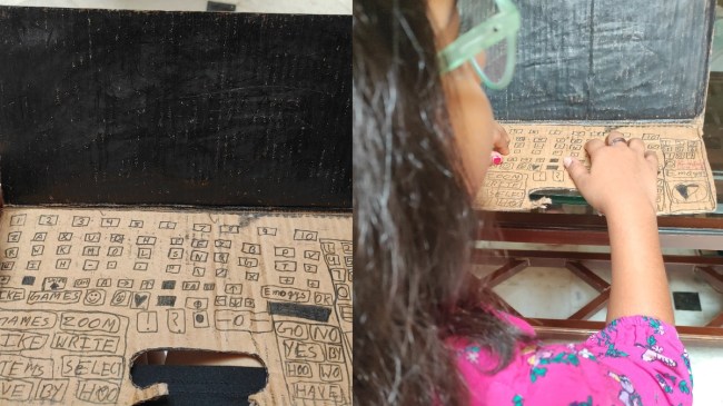 दरअसल, सोशल मीडिया पर एक महिला ने अपनी भतीजी के लैपटॉप को शेयर किया, जो उसने कार्डबोर्ड पर खुद बनाया है। साथ ही उसमें असली लैपटॉप की तरह फिचर्स भी दिए। एक्स पर शेयर की इस पिक्चर में आप देख सकते हैं कि मासूम ने किसी कार्डबोर्ड पर बहुत ही खूबसूरत लैपटॉप बना डाला। साथ ही उसने इसमें गेम्स, जूम, लाइक, राइट सेलेक्ट के बटन को भी डिजाइन किया है।