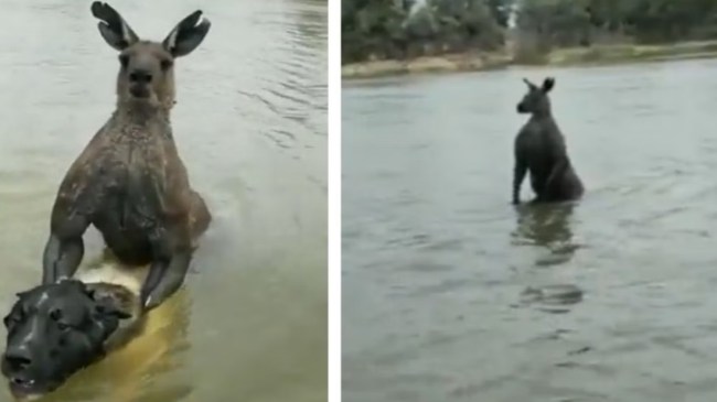 वीडियो में देखा जा सकता है कि दो मीटर लंबा कंगारू एक कुत्ते को तालाब में खींच ले गया। उसने उसे कसकर पकड़ रखा है। कुत्ता मिक मोलोनी नाम के शख्स का था, जो अपने कुत्ते को मुर्रे नदी के किनारे घुमाने ले गया था। हालांकि उन्हें नहीं पता था कि उनका कुत्ता अचानक गायब हो जाएगा। मोलोनी ने अपने कुत्ते को काफी देर तक खोजा, लेकिन वह कहीं नहीं मिला। हालांकि काफी देर बाद उन्होंने अपने कुत्ते को कंगारू के चंगुल में फंसा देखा, जिसके बाद उनके होश उड़ गए।