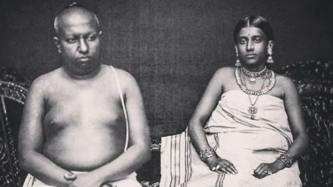 рдХрд╣рд╛ рдЬрд╛рддрд╛ рд╣реИ рдХрд┐ рдХреЗрд░рд▓ рдореЗрдВ рдкрд╣рд▓реА рдлреЛрдЯреЛ рд░рд╛рдЬрд╛ рдЕрдпрд┐рд▓реНрдпрдо рдерд┐рд░реБрдирд▓ рдФрд░ рдЙрдирдХреА рдкрддреНрдиреА рдХрд▓реНрдпрд╛рдгреА рдХреБрдЯреНрдЯреА рдХреЗ рд╕рд╛рде рдЦреАрдВрдЪреА рдЧрдИ рдереАред рдЗрд╕ рддрд╕реНрд╡реАрд░ рдХреЛ рдЦреАрдВрдЪрдиреЗ рд╡рд╛рд▓реЗ рдХреЛ 2001 рд╕реЛрдиреЗ рдХреЗ рд╕рд┐рдХреНрдХреЗ, 500 рдХреНрд╡рд┐рдВрдЯрд▓ рдХрд╛рд▓реА рдорд┐рд░реНрдЪ, 100 рдХреНрд╡рд┐рдВрдЯрд▓ рдЗрд▓рд╛рдпрдЪреА, 1000 рдХреНрд╡рд┐рдВрдЯрд▓ рд╕реЛрдВрда рдЖрджрд┐ рджрд┐рдП рдЧрдП рдереЗред рдпрд╣ рдлреЛрдЯреЛ 1870 рдореЗрдВ рдЦреАрдВрдЪреА рдЧрдИ рдереАред