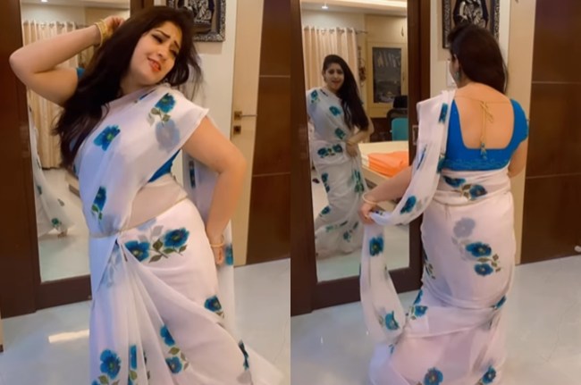 Viral Video: सोशल मीडिया पर अकसर डांस के वीडियो वायरल होते हैं। ऐसा ही एक वीडियो इन दिनों इंटरनेट पर जमकर वायरल हो रहा है। वीडियो में भाभी शीशे के सामने डांस करती नजर आ रही हैं। भाभी ने बेहद सुंदर सफेद पर नीले रंग के प्रिंट की हुई साड़ी पहनी हुई है।