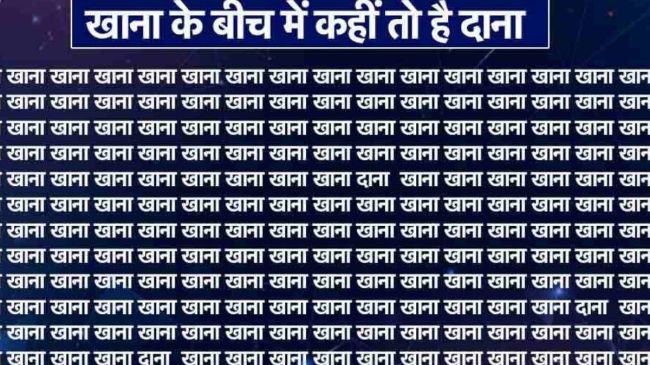 फोटो को देखने पर पहली नजर में यही समझ आएगा कि इसमें तो हर जगह खाना-खाना.. ही लिखा हुआ है लेकिन नहीं जनाब, खाना के बीच में दाना भी छुपा हुआ है। अगर आप ध्यान से देखेंगे तो आपको दाना भी दिखाई देगा। अब आपको खोजकर बताना है कि फोटो में कितनी जगह खाना की जगह दाना लिखा हुआ है। ध्यान रहे ये गेम आपको ईमानदारी से खेलना है, ईमानदारी से खोजकर कमेंट करके बताएं कि कितनी जगह खाना के बीच दाना लिखा हुआ है।