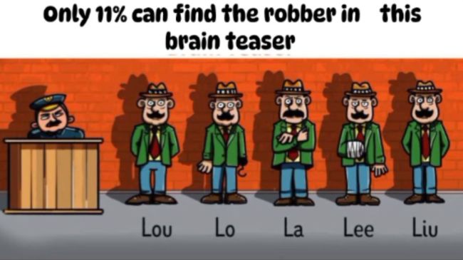 इंस्टाग्राम पर पोस्ट की गई इस पहेली में एक पुलिसकर्मी के सामने पांच लोग खड़े हैं। जिनके नाम क्रमशः लू, लो, ला, ली या लियू है। पांचों दीवार के किनारे टेक लेकर खड़े हैं। सवाल ये है कि आखिर इसमें से चोर कौन है? इंस्टाग्राम पर इस पहेली को इस टेक्स्ट के साथ शेयर किया गया है कि इस ब्रेन टीजर में सिर्फ 11% लोग ही असली चोर को खोज सकते हैं। क्या आपने उसे पहचान लिया है?