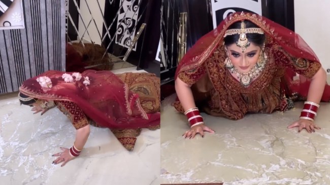 Bride push ups in wedding dress: सोशल मीडिया पर आपने कई मजेदार वीडियो देखे होंगे, जिसे देखकर आपको अपनी हंसी पर कंट्रोल करना मुश्किल हो जाता है। हालांकि, यहां पर कई ऐसे वीडियो देखने को मिलते हैं, जिन्हें देखकर प्रेरणा मिलती है। इसी बीच इंस्टाग्राम पर एक दुल्हन का वीडियो सामने आया है, जो इन दिनों बड़ा तेजी से वायरल हो रहा है। जिसमें वह शादी के जोड़े में पुश अप्स लगाती नजर आती है।