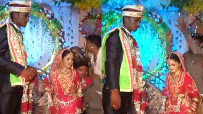 वीडियो में देखा जा सकता हैं कि दूल्हा और दुल्हन की ऊंचाई में काफी अंतर हैं। दोनों जयमाला के लिए मंच पर खड़े हैं लेकिन दुल्हन की हाइट इतनी कम है कि वह चाहकर भी दूल्हे को वरमाला नहीं पहना सकती। ऐसे में दुल्हन के भाई ने मदद की और फिर वरमाला पहनाया गया।