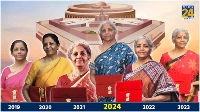 निर्मला सीतारमण द्वारा लगातार छठवी बार बजट पेश किया गया है। इस बार वो नीली रंग की साड़ी में नजर आई हैं। जबकि, इससे पहले वो लाल, पीली, गुलाबी साड़ी में भी दिखी हैं। कहा जाता है कि वित्त मंत्री निर्मला सीतारमण की साड़ी का रंग किसी न किसी संदेश के साथ होता है। आइए जानते हैं कि साल 2019 से लेकर 2024 तक के बजट में निर्मला सीतारमण किस रंग की साड़ी में दिखीं और उन रंग से क्या संदेश मिला?