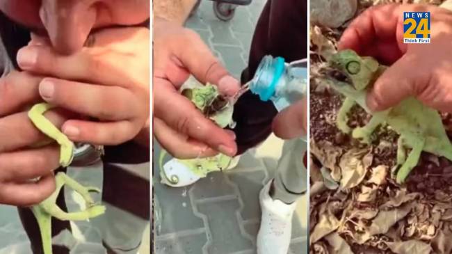 रिपोर्ट के मुताबिक, शख्स को गिरगिट झाड़ियों में मृत अवस्था में पाया गया था। गिरगिट को देखने के बाद शख्स उसे हाथ में लेता है और बोतल से उस पर पानी डालता है। फिर गिरगिट के शरीर की हल्की मालिश शुरू करता है और मुंह से गिरगिट के मुंह में सांस भी देता है। काफी प्रयासों के बाद गिरगिट के शरीर में जान आ जाती है। सोशल मीडिया वायरल इस वीडियो को देखने के बाद यूजर्स इसे चमत्कार बता रहे हैं।