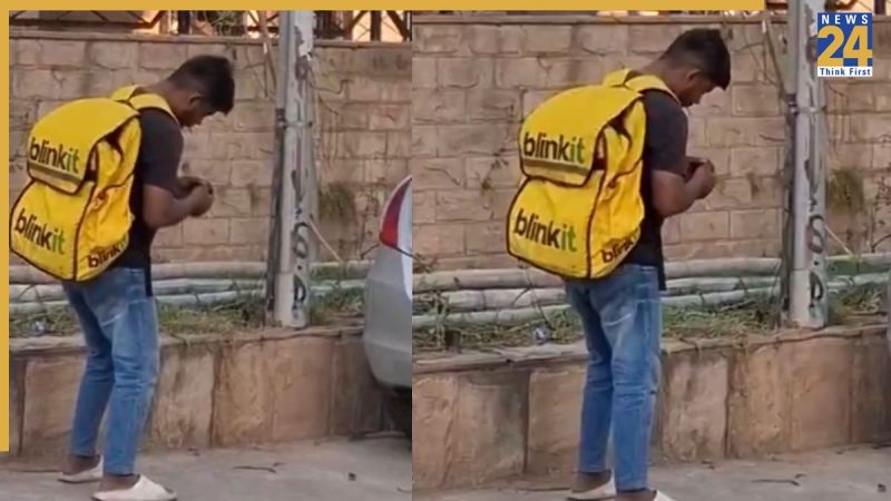 рд╡реАрдбрд┐рдпреЛ рдореЗрдВ рдпреБрд╡рдХ рдбрд┐рд▓реАрд╡рд░реА рдпреВрдирд┐рдлреЙрд░реНрдо рдореЗрдВ рджрд┐рдЦрд╛рдИ рджреЗ рд░рд╣рд╛ рд╣реИ рдФрд░ рдЙрд╕рдХреЗ рдореБрдВрд╣ рдореЗрдВ рдмреАрдбрд╝реА рднреА рд╣реИ. рд▓реЗрдХрд┐рди рд╕рдмрд╕реЗ рдЪреМрдВрдХрд╛рдиреЗ рд╡рд╛рд▓реА рдмрд╛рдд рдпрд╣ рд╣реИ рдХрд┐ рд╡рд╣ рдХрд░реАрдм рдврд╛рдИ рдШрдВрдЯреЗ рддрдХ рдПрдХ рд╣реА рдЬрдЧрд╣ рдкрд░ рдЦрдбрд╝рд╛ рд░рд╣рд╛, рдЬреИрд╕реЗ рдЙрд╕рдХрд╛ рд╢рд░реАрд░ рдкреВрд░реА рддрд░рд╣ рдЬрдбрд╝ рд╣реЛ рдЧрдпрд╛ рд╣реЛ. рдЖрд╕рдкрд╛рд╕ рд╕реЗ рдЧрд╛рдбрд╝рд┐рдпрд╛рдВ рдЧреБрдЬрд░рддреА рд░рд╣реАрдВ рдФрд░ рд▓реЛрдЧ рдЙрд╕реЗ рдЖрд╡рд╛рдЬ рд▓рдЧрд╛рддреЗ рд░рд╣реЗ, рд▓реЗрдХрд┐рди рдЙрд╕рдиреЗ рдХреЛрдИ рдкреНрд░рддрд┐рдХреНрд░рд┐рдпрд╛ рдирд╣реАрдВ рджреА.