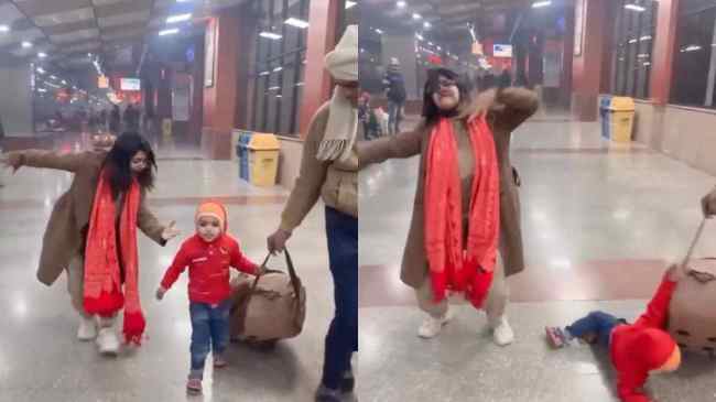 рд╡реАрдбрд┐рдпреЛ рдореЗрдВ рджреЗрдЦрд╛ рдЬрд╛ рд╕рдХрддрд╛ рд╣реИ рдХрд┐ рдПрдХ рд▓реЬрдХреА рдПрдХ рд░реЗрд▓рд╡реЗ рд╕реНрдЯреЗрд╢рди рдкрд░ рдбрд╛рдВрд╕ рдХрд░ рд░рд╣реА рд╣реИред рд╡рд╣реАрдВ рдкрд░ рдПрдХ рдЫреЛрдЯрд╛ рдмрдЪреНрдЪрд╛ рднреА рдЕрдкрдиреЗ рдкрд┐рддрд╛ рдХреЗ рд╕рд╛рде рдЪрд▓рддрд╛ рджрд┐рдЦрд╛рдИ рджреЗ рд░рд╣рд╛ рд╣реИред рдмрдЪреНрдЪреЗ рдХреЗ рдкрд┐рддрд╛ рд╣рд╛рде рдореЗрдВ рдмреИрдЧ рдкрдХреЬреЗ рд╣реБрдП рд╣реИрдВ рдФрд░ рдмрдЪреНрдЪрд╛ рдЗрд╕реА рдмреИрдЧ рдХреЛ рдкрдХреЬрдХрд░ рдкреАрдЫреЗ-рдкреАрдЫреЗ рдЪрд▓ рд░рд╣рд╛ рд╣реИред рддрднреА рдкреАрдЫреЗ рд╕реЗ рдПрдХ рд▓реЬрдХреА рдЖрдИ рдФрд░ рдбрд╛рдВрд╕ рдХрд░рдиреЗ рд▓рдЧреАред