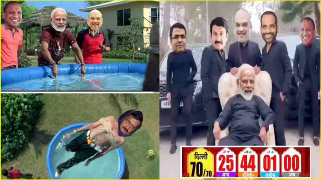 इसमें मोदी सरकार की टीम ने केजरीवाल को स्विमिंग पूल में डाला हुआ है और उसे वो इलेक्ट्रिक शॉट देते नजर आ रहे हैं।