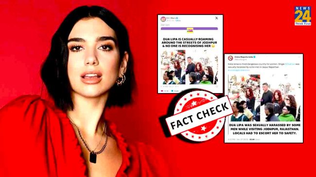मामला ऐसा है कि सोशल मीडिया पर फेमस मीम्स पेज RVCJ पर 27 दिसंबर को दुआ लिपा की 2 तस्वीरें शेयर की गईं, वह नीली जींस और काली टी-शर्ट पहने दिखाई दे रही हैं। इसके कैप्शन में बताया गया कि जोधपुर की सड़कों पर सिंगर के साथ छेड़छाड़ हुई, जिसके बाद स्थानीय लोगों ने उन्हें बचाया। जब इस पोस्ट की गहराई से जांच हुई तो पता चला कि इसे एडिट किया गया है। RVCJ की असली पोस्ट के कैप्शन में लिखा- ‘फेमस पॉप स्टार दुआ लिपा जोधपुर की सड़कों पर बेफिक्र होकर लोगों के बीच घूम रही हैं। किसी को उनके सेलिब्रिटी होने का ऐहसास नहीं है।’ इससे साफ होता है कि जोधपुर में दुआ लिपा के साथ किसी भी तरह की छेड़छाड़ नहीं हुई हैं।