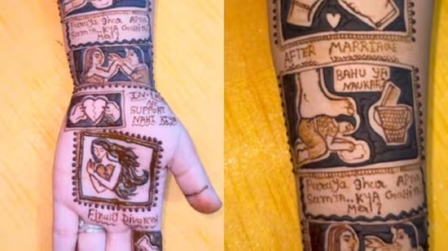 पारंपरिक रूप से दुल्हन के प्यार, मिलन और खुशी के प्रतीक के रूप में जुड़ी मेहंदी का इस्तेमाल अब दिल टूटने और तलाक की कहानियों को बयां करने के लिए किया जा रहा है। सोशल मीडिया पर वायरल ‘तलाक मेहंदी’ के जरिए एक महिला ने अपनी टूटी शादी की कहानी बताई। दुल्हन की मेहंदी के विपरित तलाक मेहंदी के हर डिजाइन में पति का विश्वासघात और महिला का दर्द छिपा हुआ है।