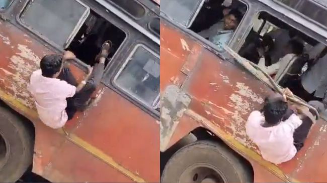 वीडियो महाराष्ट्र का बताया जा रहा है। बस आते ही लोग बस में चढ़ने की कोशिश करने लगे। एक लड़का होशियारी दिखाते हुए खिड़की से बस में दाखिल होने लगा। इसी दौरान उसके साथ एक दुर्घटना हो गई। शख्स बस की खिड़की से लटककर बस में चढ़ने की कोशिश कर रहा था, तभी बस की खिड़की टूट गई।