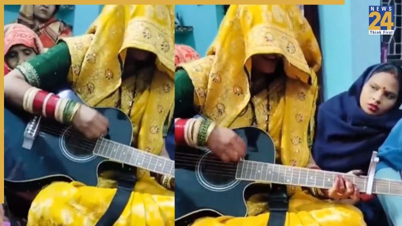 Trending Video: ऐसे तो सोशल मीडिया पर कई सारे वीडियो रोजाना तेजी से वायरल होते नजर आते हैं. लेकिन वही गिटार वाली बहू ने पूरे इंटरनेट पर तहलका मचा दिया था. अगर आपको याद नहीं है तो बता दें कि वीडियो में घूंघट वाली नई बहू पीली साड़ी में गिटार बजाते नजर आ रही हैं और उसके चारों तरफ परिवार वाले बैठे हुए हैं.