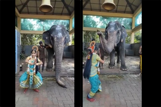 आनंद महिंद्रा ने ट्वीट कर लिखा श्री दुर्गापरमेश्वरी मंदिर, कतील, कर्नाटक। विस्मयकारी। और मुझे लगता है कि टेंपल एलिफेंट हम सभी को नए साल की शुभकामनाएं दे रहा है! अब तक इस वीडियो पर करीब 29.4k लाइक हो चुके हैं। 1.1 मिलियन लोग इसे देख चुके हैं। इसके अलावा 3 हजार लोग इसे रिट्वीट कर चुके हैं। 500 से अधिक लोगों ने कमेंट किया है। नेटिजन्स गजराज को नमन कर लड़की के सुंदर नृत्य की तारीफ कर रहे हैं। वीडियो में लड़की नाक में नथ, पैरों में पाजेब पहले पारंपरिक वेशभूषा में नृत्य करती दिख रही है।