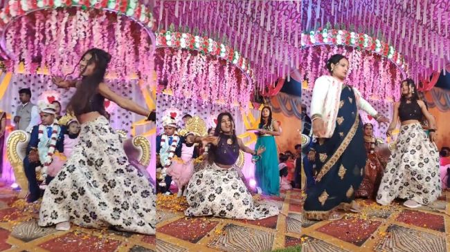 वायरल वीडियो में देखा जा सकता है कि एक लड़की स्टेज पर डांस कर रही है। स्टेज पर दूल्हा और दुल्हन बैठे हुए हैं। उनके आगे खड़ी होकर लड़की डांस कर रही है। लड़की का डांस देखकर कई लोग हूटिंग कर रहे हैं और तालियां बजा रहे हैं लेकिन इसी बीच लड़की का मां स्टेज पर पहुंची।