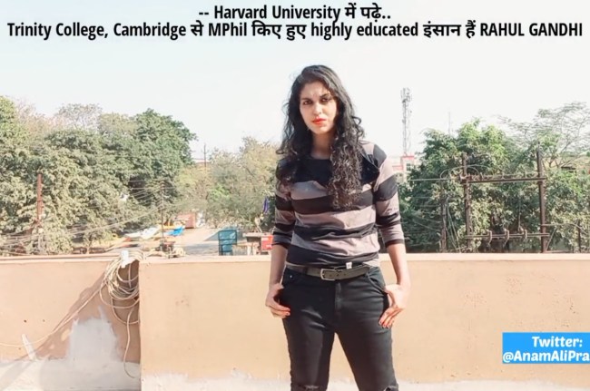 अनम अली के नाम के अकाउंट से यह रैप सॉन्ग डाला गया है। रैप में अनम कांग्रेस पार्टी और भारत जोड़ो यात्रा के बारे में बता रही हैं। 1 मीलियन से अधिक लोग इसे देख चुके हैं। 1.6 मिलियन से अधिक लोग ट्वीटर पर वीडियो को लाइक कर चुके हैं। लोग वीडियो पर कमेंट कर रहे हैं। कमेंट में कुछ लोग वीडियो की आलोचना तो कुछ उसे पसंद भी कर रहे हैं। अब लोग अनम अली का वीडियाे देख ढिंचैक पूजा की याद कर रहे हैं। बता दें 2017 में ढिंचैक पूजा ने ‘सेल्फी मैंने ले ली यार’ गाना गाया था। इसके बाद वह रातों- रात स्टार बनी गई थीं ।पूजा को रियलिटी शो ‘बिग बॉस’ में भी देखा जा चुका है।