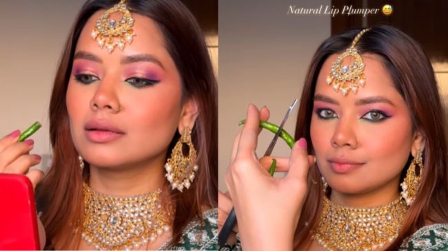 हाल ही में दिल्ली की एक ब्यूटी इन्फ्लुएंसर ने अपने सोशल मीडिया पर एक लिप-प्लंपिंग हैक का वीडियो शेयर किया। इस पोस्ट पर लोगों ने अलग-अलग प्रतिक्रिया दी है। इस वीडियो को शुभांगी आनंद नाम की इंस्टाग्राम ब्यूटी इन्फ्लुएंसर ने शेयर किया है। वीडियो में आप देख सकते हैं कि वे अपने होठों को प्लम्प करने के लिए हरी मिर्च लगा रही हैं। इस वीडियो पर अब तक 2.2 करोड़ से ज्यादा व्यूज आ चुके हैं। शुभांगी आनंद इस वीडियो में एक हरी मिर्च को आधा काटती है और इसके अंदरूनी हिस्से को अपने होठों पर रगड़ती दिखाई देती हैं। इसके बाद वो अप लुक को लिप टिंट के साथ पूरा करती है। यहां हम आपके लिए वीडियो शेयर कर रहे हैं।