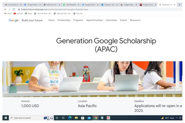 -जो होमपेज खुलेगा उस पर Generation Google Scholarship (APAC) लिंक पर क्लिक करें