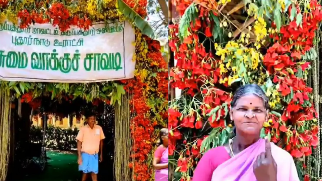 आईएएस अधिकारी सुप्रिया साहू ने एक्स (पूर्व में ट्विटर) पर एक वीडियो शेयर करते हुए लिखा कि ‘यह तमिलनाडु के तिरुपथुर जिले में एक ग्रीन पोलिंग बूथ है, जिसे टीएन क्लाइमेट चेंज मिशन के अंतर्गत काम करने वाले युवा ग्रीन साथियों के साथ जिला कलेक्टर द्वारा स्थापित किया गया है। राज्य भर में ऐसे करीब 10 बूथ बनाए गए हैं। गर्मी से बचने के लिए छाया के लिए नारियल और बांस की पत्तियों का इस्तेमाल किया गया है। केले और ताड़ के पत्तों ने मतदाताओं का स्वागत किया। साइनेज फ्लेक्स मटेरियल से बचते हुए हाथ से लिखे कपड़े के बैनर से बनाए जाते हैं। ये सिंगल यूज प्लास्टिक फ्री बूथ भी थे।’